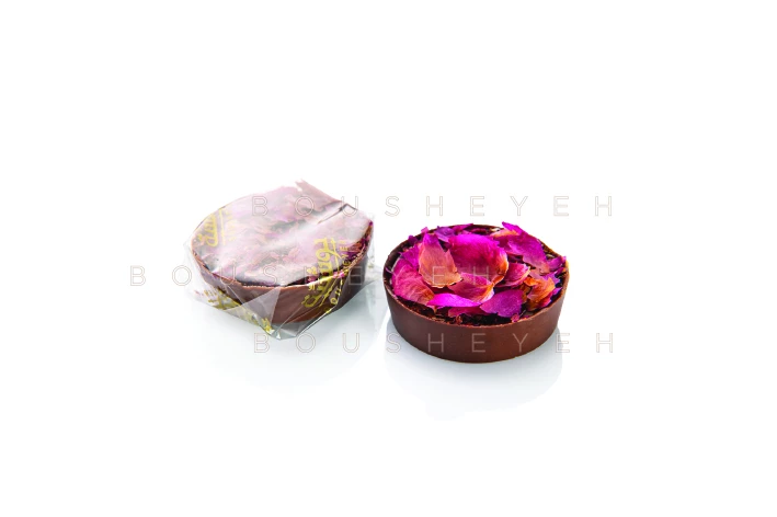 شوكولاتة بالحليب حشوة كريمة بندق مغطي بقطع الورد ٢٠٠غ