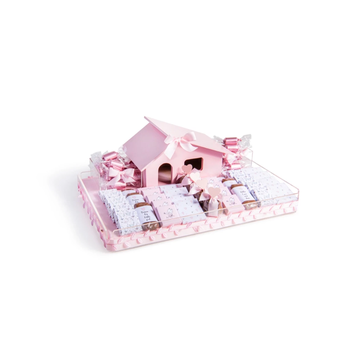 Baby boy plexi tray with customized newborn baby girl arrangement